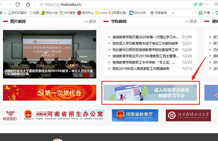 网址:http://cjy.huel.edu.cn/点击河南财经政法大学继续教育学院上“成人高等学历教育网络学习平台”,转入网上学习平台。