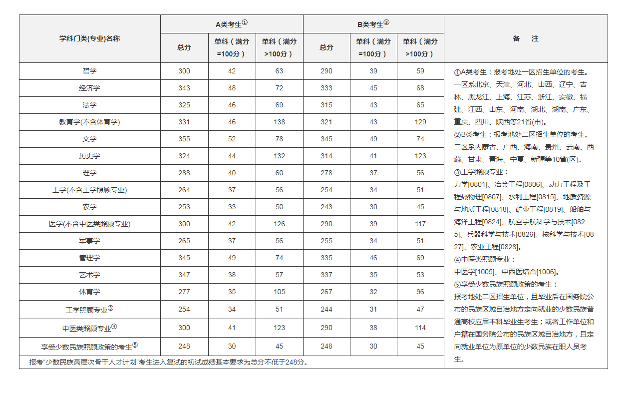 2020年全国硕士研究生招生考试考生进入复试的初试成绩基本要求(学术学位类)